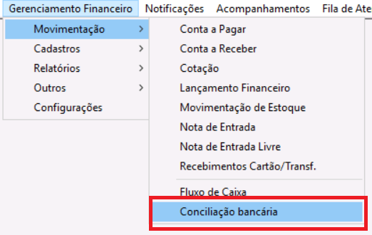 Segundo passo – Acesso à tela da conciliação bancária